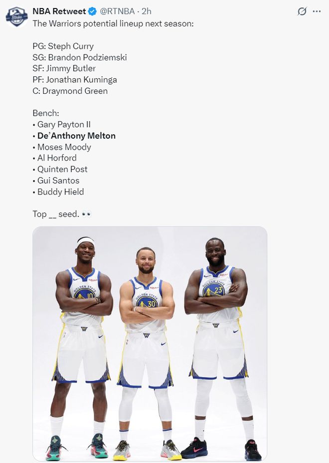 联盟签约这六人后勇士队已经完成15+3名单,新赛季勇士队大概率的12人轮换就如上图,勇士队也无需用死亡五老打先发。
